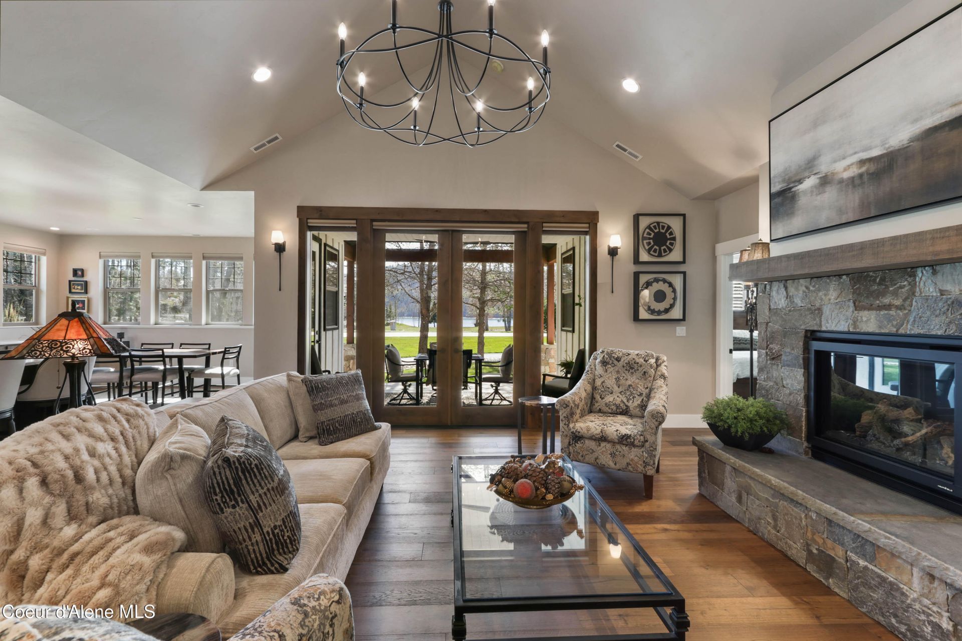 Experience exceptional design and superior craftsmanship in this stunning Dover Bay residence, perfectly positioned just one tier from the water. A spacious, level entry with unique rock wall opens to an airy floor plan with vaulted ceilings, a custom fireplace, 3 bedrooms, 2.5 baths and views of the Pend Oreille. The chef-inspired kitchen features a central island, full-length quartz countertops, expansive pantry, abundant custom cabinetry, Thermador and Sub-Zero appliances. An inviting three sided enclosed patio offers outdoor living space and the ideal place to unwind. The main suite is a true retreat, complete with its own fireplace, dual walk in closets, a luxurious bath, and a private patio to take in northern mountain views. Two generous guest bedrooms are thoughtfully situated on the opposite side of the home for added privacy. Live the resort lifestyle with the marina and fitness center just moments away, and enjoy close proximity to Sandpoint and Schweitzer Mountain. Elevate your expectations and prepare to fall in love with 403 Slaveck, a home to cherish for a lifetime.